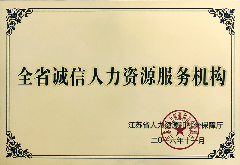 “江蘇省誠(chéng)信人力資源服務(wù)機(jī)構(gòu)”、“江蘇省工人先鋒號(hào)”等多項(xiàng)榮譽(yù)稱號(hào)。